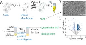 Figure 1: Schematic of the research approach based on vesicle reconstitution combined with electron microscopy and proteomics. (References: PNAS 2019, PNAS 2021, PNAS 2025, Nature Plants 2021)