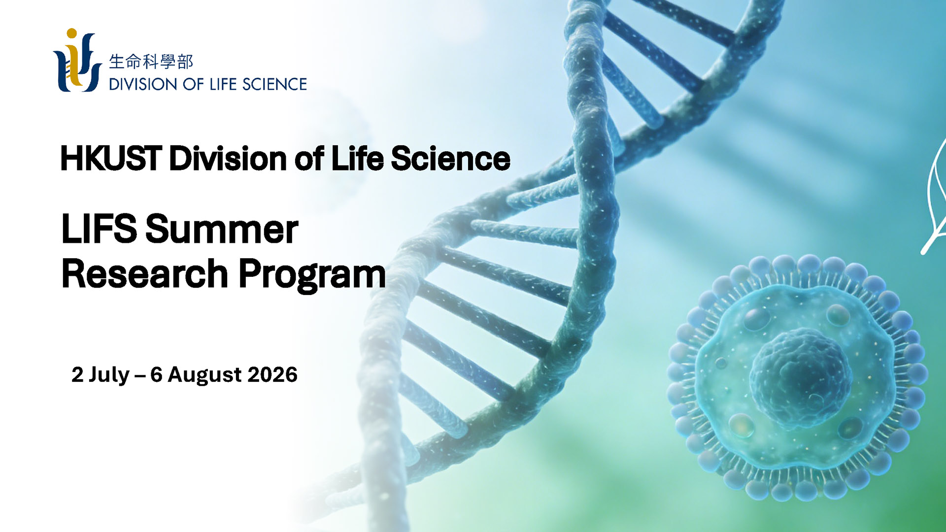 The Summer Research Program is designed for outstanding end-of-year 3 undergraduate students who are interested in pursuing research postgraduate study in the Division of Life Science at the Hong Kong University of Science and Technology (HKUST). This program offers participants the unique opportunity to immerse themselves in the research life at HKUST campus and work with faculty mentors from our Division in conducting research projects in an interactive environment. Participants can also choose to join the interview session of the LIFS Summer Recruitment Camp, which will be held on July 8-9.