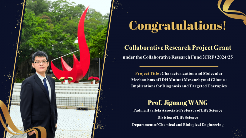Congratulations to Prof. Jiguang WANG, Padma Harilela Associate Professor of Life Science (Division of Life Science (LIFS) and Department of Chemical and Biomedical Engineering (CBE)) for being a recipient of the Collaborative Research Project Grant (CRPG) under the Collaborative Research Fund (CRF) 2024/25.