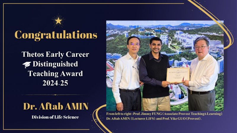 Dr. Aftab AMIN, a lecturer in the Division of Life Science (LIFS), who obtained his PhD in Life Science at HKUST, has been awarded the prestigious Thetos Early Career Distinguished Teaching Award, 2024-25.