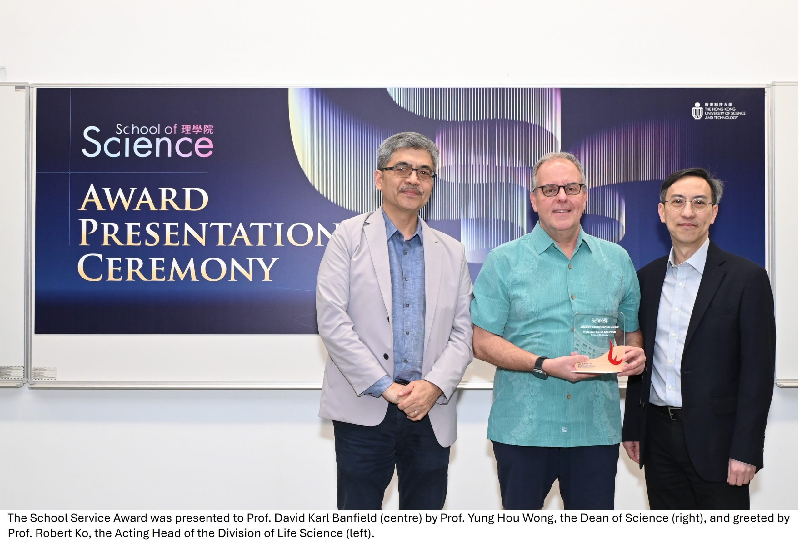 Many congratulations to Prof. David Karl Banfield, Professor of Life Science, for being awarded the School Service Award for his remarkable contributions to the Division of Life Science in various initiatives including the Open Lab Project, the undergraduate program curriculum, and his contributions to the university in different roles.
